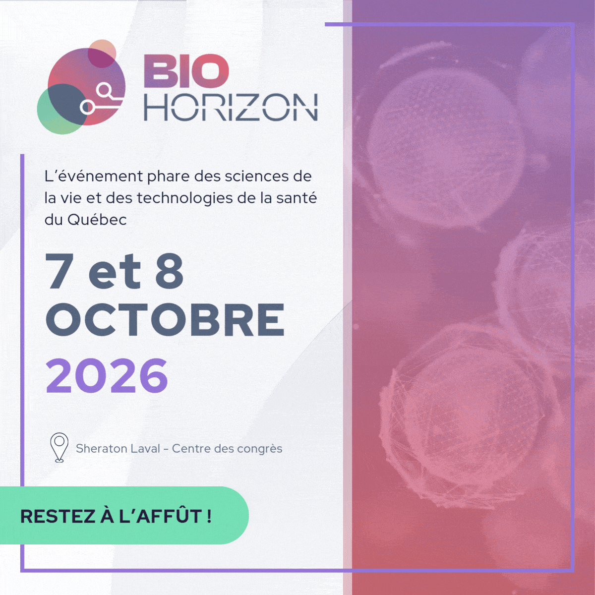 BioHorizon est le tout nouvel événement phare des sciences de la vie et des technologies de la santé au Québec, organisé conjointement par BIOQuébec et Montréal InVivo. Pensé comme un véritable carrefour d’innovation et de collaboration, BioHorizon réunira, les 7 et 8 octobre 2026 au Sheraton de Laval, les leaders, décideurs, chercheurs, investisseurs et entrepreneurs qui façonnent l’avenir du secteur au Québec, au Canada et à l’international. L’événement se déroulera en format bilingue, avec des contenus et des échanges en anglais et en français.
